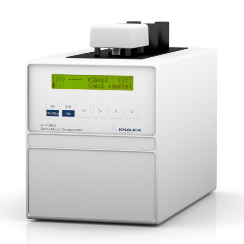 KNAUER is one of the pioneers in the field of osmometry and known for its reliable and user-friendly instruments for many decades. Our newest freezing point osmometer K-7400S allows the easy and fast determination of the osmolality of various aqueous solutions. Also, the freezing point depression of the samples can be read.